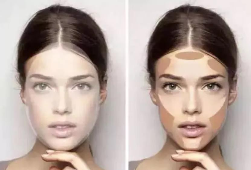 脸型比较宽的女生化妆的时候就一定需要注意的就是要在视觉上缩短自己横向的比例。所以是可以在涂完粉底液的步骤后,给自己两侧的脸上打上阴影。暗影区域是在整个脸部两侧的所有区域都可以有,特别是脸的四角若感觉特别方,在暗影的形状上面就可以做一些圆润的处理。让暗影和正常肤色的过渡处的形状成圆润的感觉。